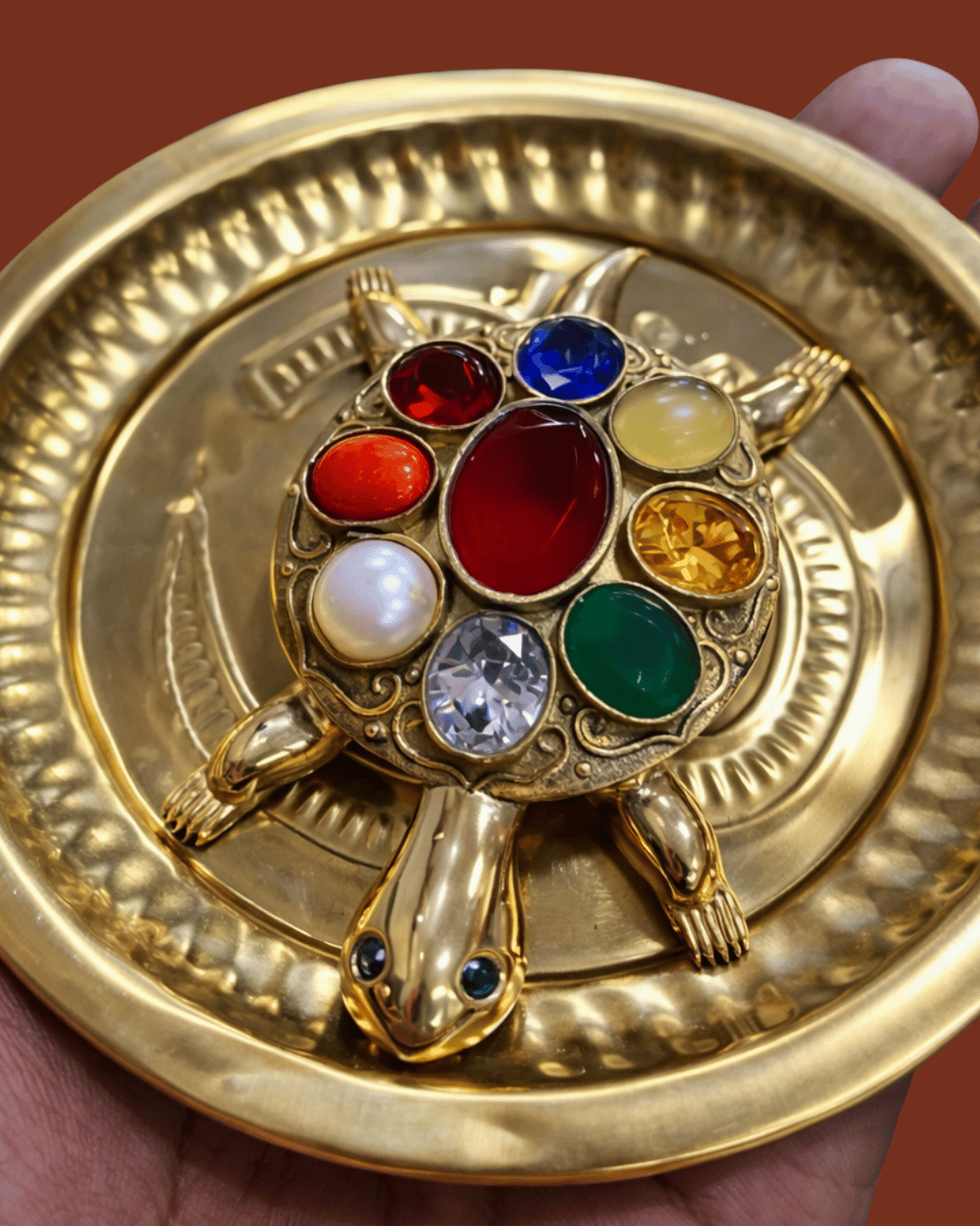 Navratna Tortoise on Brass Vastu Plate